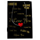 Elegante Eu Amo Você Escreveu em ouro com um coração vermelho. Os clientes têm a opção de mover ou redimensionar as palavras. O plano de fundo preto pode ser alterado nas opções de design. em celeste@kkhoncepts.com