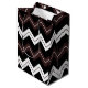 Preto White Brown Chevron Stripe Padrões Médios de Presente Projetados por Nisha Prabhu. Apresentando nosso na moda Black White Chevron Stripe Padrão Médio de Gift Bag, a maneira perfeita de fazer uma declaração com seu dom! Esta bolsa de presente atraente apresenta um padrão de stripe de chevron cativante em uma sofisticada paleta de cores preta, branca e castanha, acrescentando um toque de elegância moderna a qualquer presente. As cores ousadas e contrastantes criam um efeito visualmente impressionante que certamente impressionará seus destinatários. Seja aniversário, aniversário, ou qualquer ocasião especial, nosso Black White Chevron Stripe Medium Gift Bag (Padrão de Greve de Chevron Castanho Branco Negro) melhorará sua experiência de dar presentes. Faça uma impressão duradoura com este saco de presentes cativante e chic.