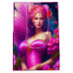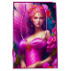 Retrato de uma bela fada fada fúchica de fantasia com flores cor-de-rosa vermelhas fuchsia no cabelo e borboletas. Arte original de Gifts_AtTheCorner Mjm ©2023.