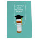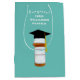Saco de presente de farmacêutico criativo para a licenciatura em farmácia com uma garrafa de prescrição com um boné preto e de ouro. Para personalizar editar texto para adicionar seu nome.