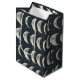 Elegante bolsa de presente com fase da lua e padrão celestial apresentando luas crescentes, estrelas e detalhes lunares radiantes em um fundo escuro. Ideal para amantes de astrologia, entusiastas da lua, buscadores espirituais, observadores de estrelas e fãs de estilo celestial místico.