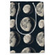 Elegante bolsa de presente com fase da lua e padrão celestial apresentando luas crescentes, estrelas e detalhes lunares radiantes em um fundo escuro. Ideal para amantes de astrologia, entusiastas da lua, buscadores espirituais, observadores de estrelas e fãs de estilo celestial místico.