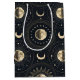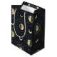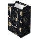 Elegante bolsa de presente com fase da lua e padrão celestial, apresentando luas crescentes, estrelas e detalhes lunares radiantes em um fundo escuro. Ideal para amantes de astrologia, entusiastas da lua, buscadores espirituais, observadores de estrelas e fãs de estilo celestial místico.