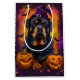 Abraçar o espírito do Dia das Bruxas com esta design encantadora que apresenta um cachorro fofo num chapéu de bruxa rodeado por abóboras entalhadas. Perfeito por adicionar um pouco de charme assustador às suas comemorações festivas.