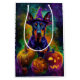 Abraçar o espírito do Dia das Bruxas com esta design encantadora que apresenta um cachorro fofo num chapéu de bruxa rodeado por abóboras entalhadas. Perfeito por adicionar um pouco de charme assustador às suas comemorações festivas.