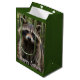 Esta bolsa de presente apresenta um guaxinim bonitinho na floresta. O texto pode ser alterado ou eliminado.