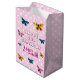 Bonita borboleta rosa, Padrinha Feliz Papel de Aniversário. Celebre o dia especial do seu pequeno com esta bolsa de presente de aniversário com tema borboleta perfeita para a festa de aniversário de uma menina! Apresentando um fundo de gradiente rosa suave, borboletas coloridas esta design adiciona um toque mágico a qualquer celebração. Personalize-o com o nome do seu filho e torne o seu dia inesquecível!"