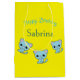 Sacola Para Presentes Média Feliz aniversário, gatinhos azuis, amarelos