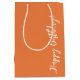 Um simples saco de presentes laranja com "Parabéns" em letra chic faz um acessório perfeito para dar presentes.