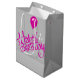 Sacola Para Presentes Média Feliz aniversário rosa na Cinza