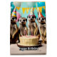 São Quatro Meerkats, Três Chapéus De Aniversário A Vestir E A Ficar Atrás De Um Bolo De Aniversário Com As Palavras Feliz Aniversário.
