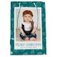 Sacola Para Presentes Média Feliz moderna | Teal | Feriado fotográfico