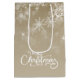Sacola Para Presentes Média Feliz Natal Flocos de Neve Feriado de Beige