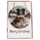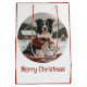 Sacola Para Presentes Média Feliz Natal Fronteira Collie Dog Snowman