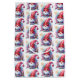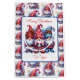 Gnomos brancos de inverno bonitos, com cores aquáticas, em saco de presente de Natal vermelho e azul que você pode personalizar.