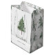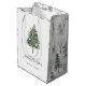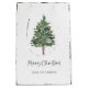 Esta bolsa de Natal minimalista diz "Feliz Natal". Uma simples árvore de Natal de pinheiro aquoso adiciona um toque na moda e festivo, enquanto os lados do saco estão decorando com um padrão de pinheiro coordenador.