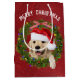 Sacola Para Presentes Média Feliz Ouro de Natal Retriever em coroa