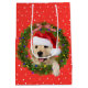 Sacola Para Presentes Média Feliz Ouro de Natal - Retriever no bolinhas