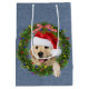 Sacola Para Presentes Média Feliz Ouro de Natal Retriever no Denim