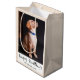 Feliz Pawlidays Engraçado Pun Pet Foto Medium Gift Bag. Design de férias simples e moderno com uma foto de animal de estimação e um trocadilho engraçado. Adicione sua foto, nome e ano.