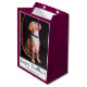 Feliz Pawlidays Engraçado Pun Pet Foto Medium Gift Bag. Design de férias simples e moderno com uma foto de estimação da família. O fundo é vermelho-escuro roxo. Adicione sua foto, nome da família e ano.