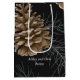 Feriados Felizes de Pinho Negro e Marrom Favorecem Saco de Presente Médio Este saco de presentes minimalista é uma maneira elegante de dizer obrigado. Apresentando uma ilustração de cone de pinho grande em um simples fundo preto. A tipografia branca torna o saco moderno e na moda. O texto pode ser alterado para qualquer coisa que você queira e pode ser adequado a qualquer ocasião. Perfeito para o Natal, casamentos, chás de panela, chás de fraldas, graduações, aniversários ou qualquer evento de estilo de celebração. Projetado pela RevivaDesigns