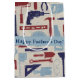 Saco médio brilhante com a imagem de um sortido de ferramentas vermelhas, marinhos e azuis claras em creme cercado com uma fita azul personalizável com o sentimento do Dia do Pai. Veja confetti correspondente, caixa de favoritos, etiqueta de favor, etiqueta, adesivo quadrado e papel de embalagem. Veja a coleção inteira do Padre Gift Bag no TOUCHES ESPECIAIS | Seção Favoritos para festas.