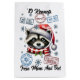 Um guaxinim brincalhão vestindo um cachecol riscado vermelho e branco em meio a um pano de fundo de adesivos festivos. Cada adesivo carregar mensagens alegres sobre as entregas especiais dos Papais noeis e os preparativos de Natal, alegria radiante e espírito de férias.