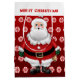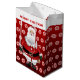 Este saco de presentes meio festivo apresenta um desenho animado de Papai Noel giro sobre um fundo vermelho decorado com um padrão de flocos de neve. Personalize-o hoje em ambos os lados e crie instantaneamente um saco verdadeiramente único para os presentes de Natal deste ano!