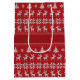 Uma árvore de Natal vintage, floco de neve e padrão de suéter argyle de rena em vermelho em torno do seu texto personalizado em uma bolsa de presente de Natal com um visual retrô. Personalize seus presentes de Natal com essas belas bolsas nostálgicas e antiquadas. Perfeito para presentes corporativos de Natal que podem ser personalizados com o nome da sua empresa ou negócio.