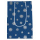 Sacola Para Presentes Média Festivo Winter Silver Blue Snowflakes Foliday