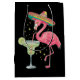 Sacola Para Presentes Média Flamingo Bebendo Margarita Engraçado Poncho Mexica