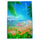 Flamingo Love é minha arte romântica de praia de sonho com todos os meus elementos favoritos, Palmeiras, golfinhos, gaivotas, veleiros, estrelas-do-mar, e, claro, dois flamingos enfrentando uns aos outros para formar sua famosa forma cardíaca rosa.
