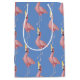 Sacola Para Presentes Média Flamingo rosa no aniversário azul