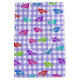 Inclinação colorida sobre fundo de gingham branco e roxo.