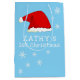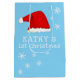O Primeiro Natal do Bebê, Floco de Neve Azul de Papai Noel. Primeiro design de Natal bonito com um chapéu de Papai Noel, flocos de neve e um nome de bebê em um roteiro branco - personalize com o nome do seu bebê.