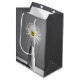 Flor branca solteiro num vaso contemporâneo em design minimalista. O texto é editável.