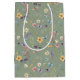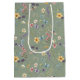 Sacola Para Presentes Média Flor Silvestre e Borboleta Verde Sálvia