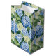 Esta bolsa de presente é mostrada numa adorável impressão floral de hydrangea. Impressão licenciado brilhante mostrado