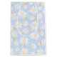 Sacola Para Presentes Média Flores de Margarida Branca Clássica Azul
