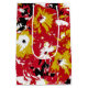 Um vibrante design vermelho, amarelo, preto e branco pop de petúnias.
