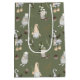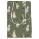 Esta bolsa de presente de Natal gnomo vai ficar perfeita debaixo da tua árvore. A design apresenta gnomos bonitos, renas e galhos em um fundo verde sábio.