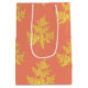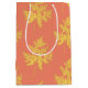 Sacola Para Presentes Média Folha Dourada no Padrão Botânico Coral
