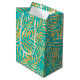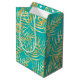 Sacola Para Presentes Média Folhas de Palma Douradas em Turquesa