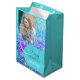 Listras de cor azul com bolsa de presente de design floral com uma foto da sua escolha. Simples sacola de presente de moda perfeita para uma na moda fêmea de comemoração.
