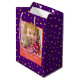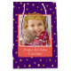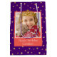 Enrole seus presentes em um saco de presentes roxo real e personalizado que apresenta um fundo elegante de estrelas douradas e brilhantes. Personalize esta brilhante design com uma foto da sua jovem aniversariante, completa com uma bela coroa de princesa dourada. Adicione um toque especial com uma saudação personalizada, como "Feliz Aniversário, [nome da criança]!." Esta bolsa de presente personalizada é perfeita para qualquer festa de aniversário de menina e adiciona um toque de magia a cada presente. Veja a coleção de cheios para uma versão com a coroa do príncipe de um menino.