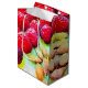 Sua bolsa personalizada de presentes com uma fotografia digitalmente alterada de amêndoas e framboesas. Um filtro de aquarela foi adicionado à foto original. Clique em Personalizar! para adicionar texto em um estilo de fonte, tamanho e cor preferidos.