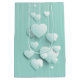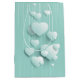 Sacola Para Presentes Média Fundo verde claro com corações brancos 3D