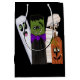 Saco do Presente do Partido de Médio Tamanho com Frankenstein Engraçado, Fantasma, Homem Invisível e design de trabalho de arte de Abóbora AMalhaSeal no Zazzle é uma adição muito divertida em nossa Coleção de Halloween com quatro favoritos de fãs do Halloween. Este design divertido de boneco de sorvete de madeira animado com personagens de desenho animados está comemorando que o Dia das Bruxas é Todos os Dias. Frankenstein escapou de seu castelo em Genebra, Suiça. Fantasma Ghoulish com cobrir de lençol de cama e olhinhos assustadores. O Homem Invisível está todo amarrado e embrulhado por um bom tempo. O Jack O Lanterna Pumpkin esculpido está pronto para iluminar o brilho espiritual do Feliz Dia das Bruxas ao redor do mundo. Tons de paleta colorida de cores preta, branca, cinza, castanho, castanho, laranja, roxa, verde, rosa e vermelha. Por favor, confira todos os nossos designs de arte do Halloween e produtos do nosso compro. Obrigado 👻 🧛 ♀️ 🦹 🏻 ♀️ 👀 🤡por visitar e comprar na nossa loja TheFabricSeal. Siga-nos no Zazzle e no Pinterest. #ZazzleMade