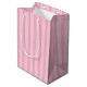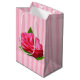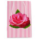 Saco de presente médio brilhante com uma imagem de cor rosa sobre listras cor-de-rosa e uma linda e rara jardinagem cor-de-rosa com folhas verdes peludas na frente. Ver o grande saco de presentes. Veja a coleção inteira de Dias de as mães Gift Bag nos TOUCHES ESPECIAIS| Seção Favoritos para festas.